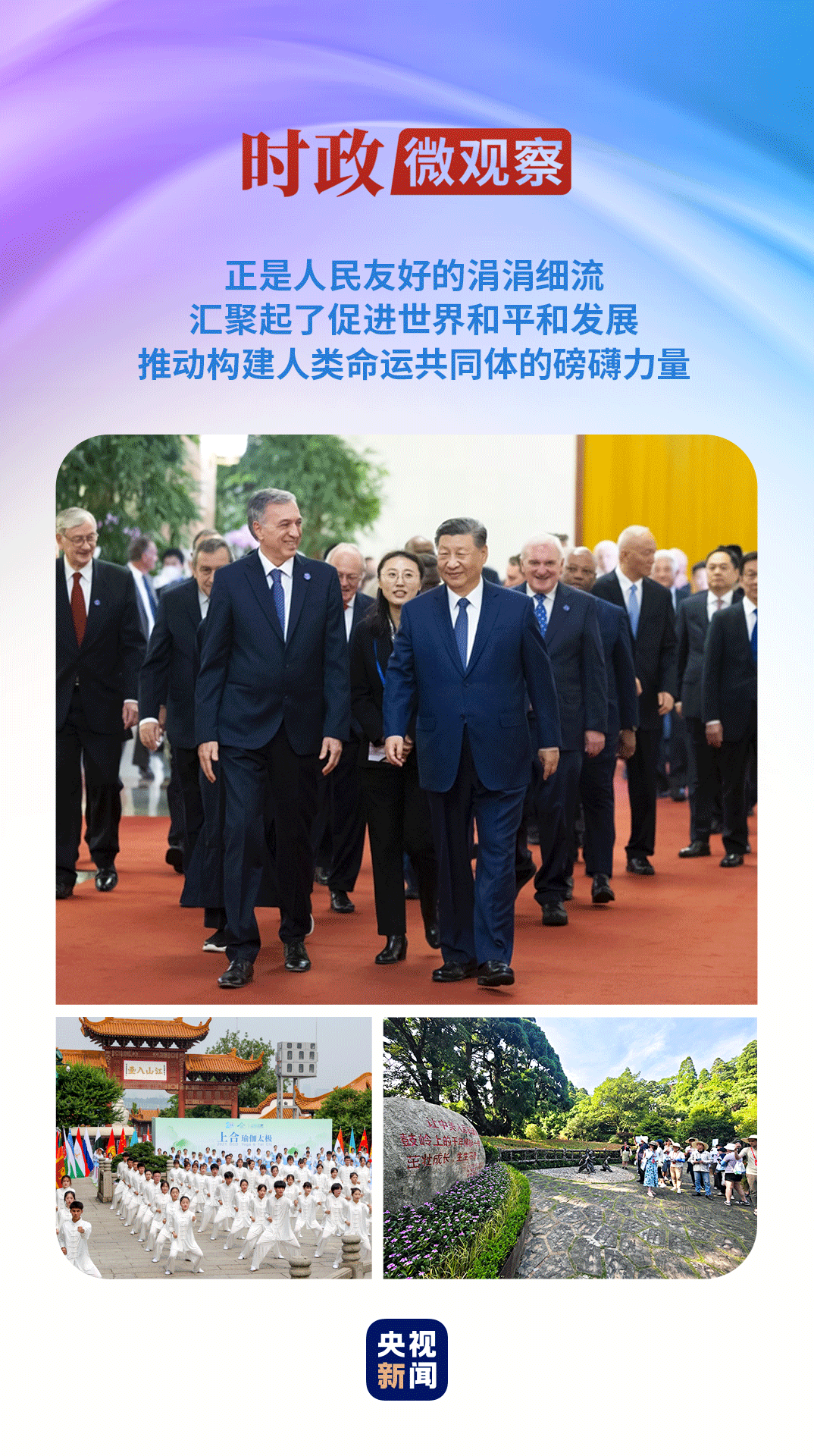 “大家的讲话让我想起一位外国朋友曾对我说过,‘友谊可是件大事,一个友谊的世界才可能是和平的世界’。正是人民友好的涓涓细流,汇聚起了促进世界和平和发展、推动构建人类命运共同体的磅礴力量。”习近平主席说。