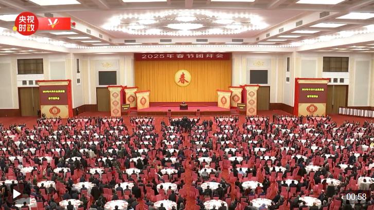 中共中央、国务院27日上午在人民大会堂举行2025年春节团拜会。中共中央总书记、国家主席、中央军委主席习近平发表讲话,代表党中央和国务院,向全国各族人民,向香港特别行政区同胞、澳门特别行政区同胞、台湾同胞和海外侨胞拜年。
