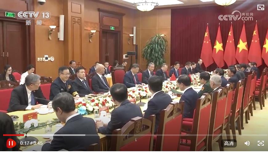 习近平强调,双方要加强战略协作,夯实中越命运共同体建设政治根基。密切高层往来,加强战略沟通,共同反对霸权主义、单边主义、保护主义,落实好全球发展倡议、全球安全倡议、全球文明倡议,共同捍卫国际公平正义,维护亚洲乃至世界和平稳定和发展繁荣。