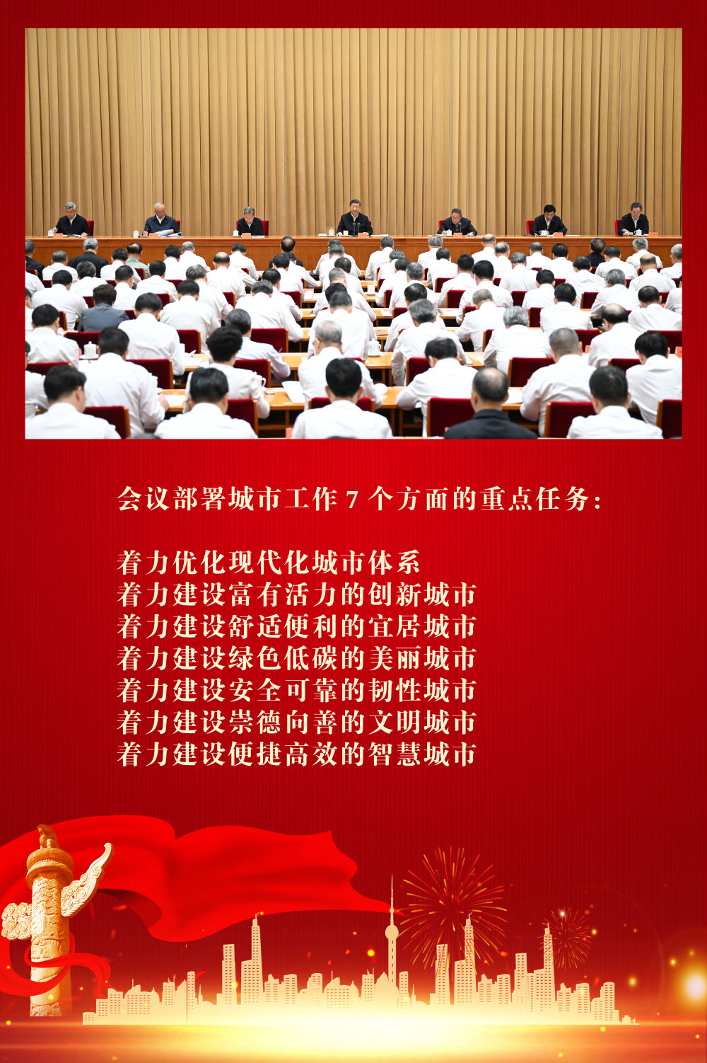 7月14日至15日,中央城市工作会议在北京举行。中共中央总书记、国家主席、中央军委主席习近平出席会议并发表重要讲话。习近平在重要讲话中总结新时代以来我国城市发展成就,分析城市工作面临的形势,明确做好城市工作的总体要求、重要原则、重点任务。