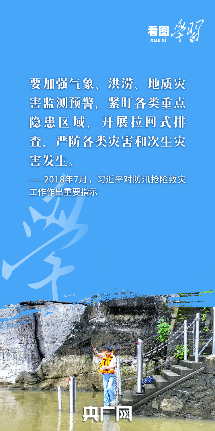 “全力搜救失联被困人员,果断转移安置受威胁群众”“全力保障人民生命财产安全”……习近平总书记高度重视防灾减灾救灾工作,多次就此作出重要指示批示,要求各地区各部门以“时时放心不下”的政治责任感,“为人民生命财产安全提供坚实保障”。