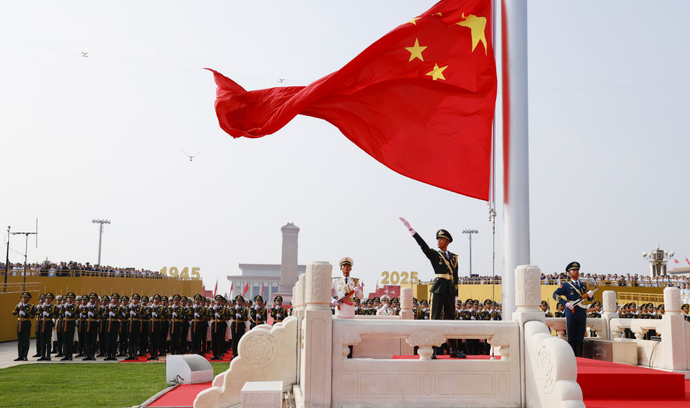 2025年9月3日,纪念中国人民抗日战争暨世界反法西斯战争胜利80周年大会在北京隆重举行。这是天安门广场举行隆重的升国旗仪式。