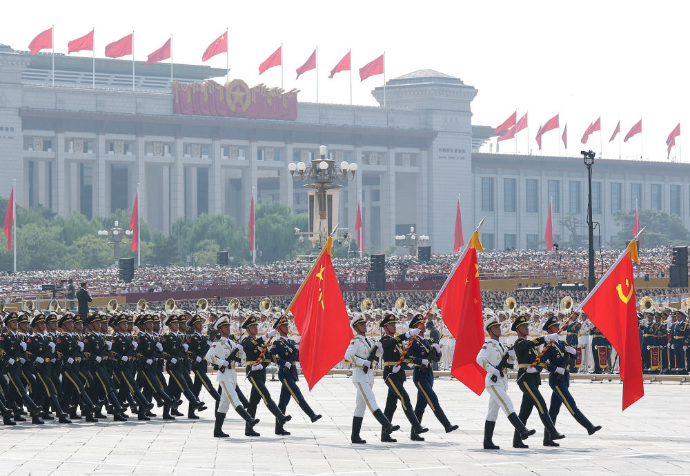2025年9月3日,纪念中国人民抗日战争暨世界反法西斯战争胜利80周年大会在北京隆重举行。这是战旗方队接受检阅。