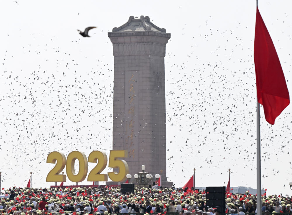 9月3日,现场放飞和平鸽。新华社记者 肖艺九 摄