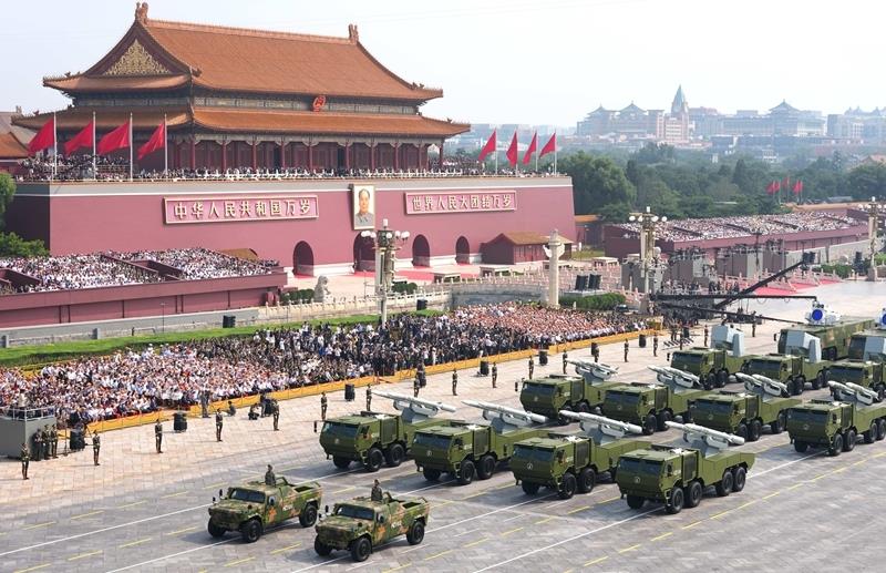 2025年9月3日,纪念中国人民抗日战争暨世界反法西斯战争胜利80周年大会在北京隆重举行。这是舰载防空武器方队接受检阅。