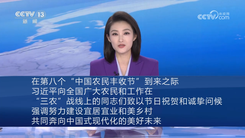 “希望广大农民群众充分发挥主动性创造性,社会各界积极支持参与,努力建设宜居宜业和美乡村,共同奔向中国式现代化的美好未来。”在第八个“中国农民丰收节”到来之际,习近平总书记向全国广大农民和工作在“三农”战线上的同志们致以节日祝贺和诚挚问候。