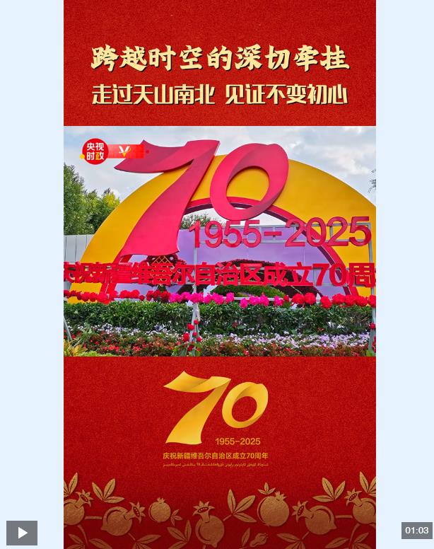 2025年9月23日,习近平率中央代表团乘专机抵达乌鲁木齐,再次踏上这片土地,出席新疆维吾尔自治区成立70周年庆祝活动。