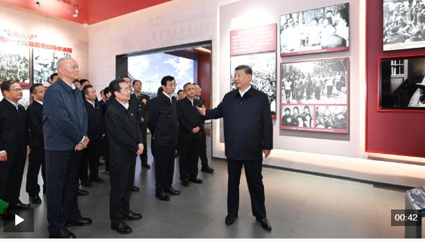 24日上午,习近平总书记在乌鲁木齐文化中心展览馆参观新疆维吾尔自治区成立70周年主题成就展。该展览全景展现了70年来在中国共产党坚强领导下、在全国各地大力支援下,新疆各族人民团结一心、艰苦奋斗、顽强拼搏取得的辉煌成就。