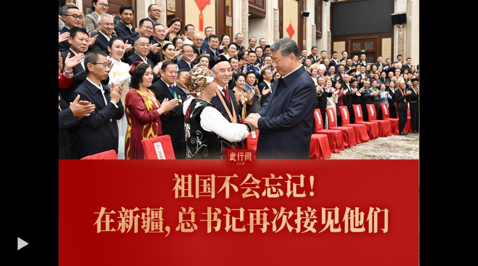 习近平23日下午接见新疆各族各界代表。代表中,我们发现了这4位,他们是“七一勋章”获得者魏德友、“七一勋章”获得者买买提江·吾买尔、“人民楷模”布茹玛汗·毛勒朵、“人民卫士”巴依卡·凯力迪别克。习近平总书记微笑着同他们亲切握手。