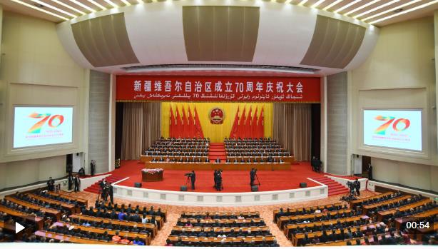 25日上午,习近平总书记在乌鲁木齐市出席新疆维吾尔自治区成立70周年庆祝大会,同新疆各族各界干部群众代表一道,热烈庆祝新疆维吾尔自治区成立70周年。