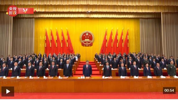 25日上午,新疆维吾尔自治区成立70周年庆祝大会在新疆人民会堂隆重举行。现场全体起立,高唱国歌。