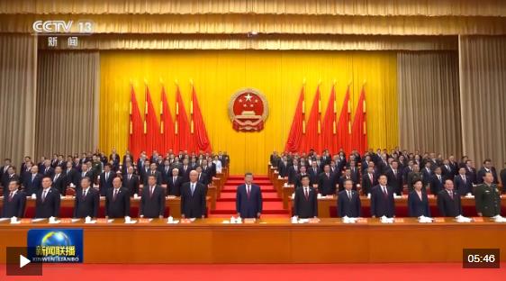上午10时30分许,在欢快的乐曲声中,习近平等领导同志走上主席台,全场响起长时间的热烈掌声。