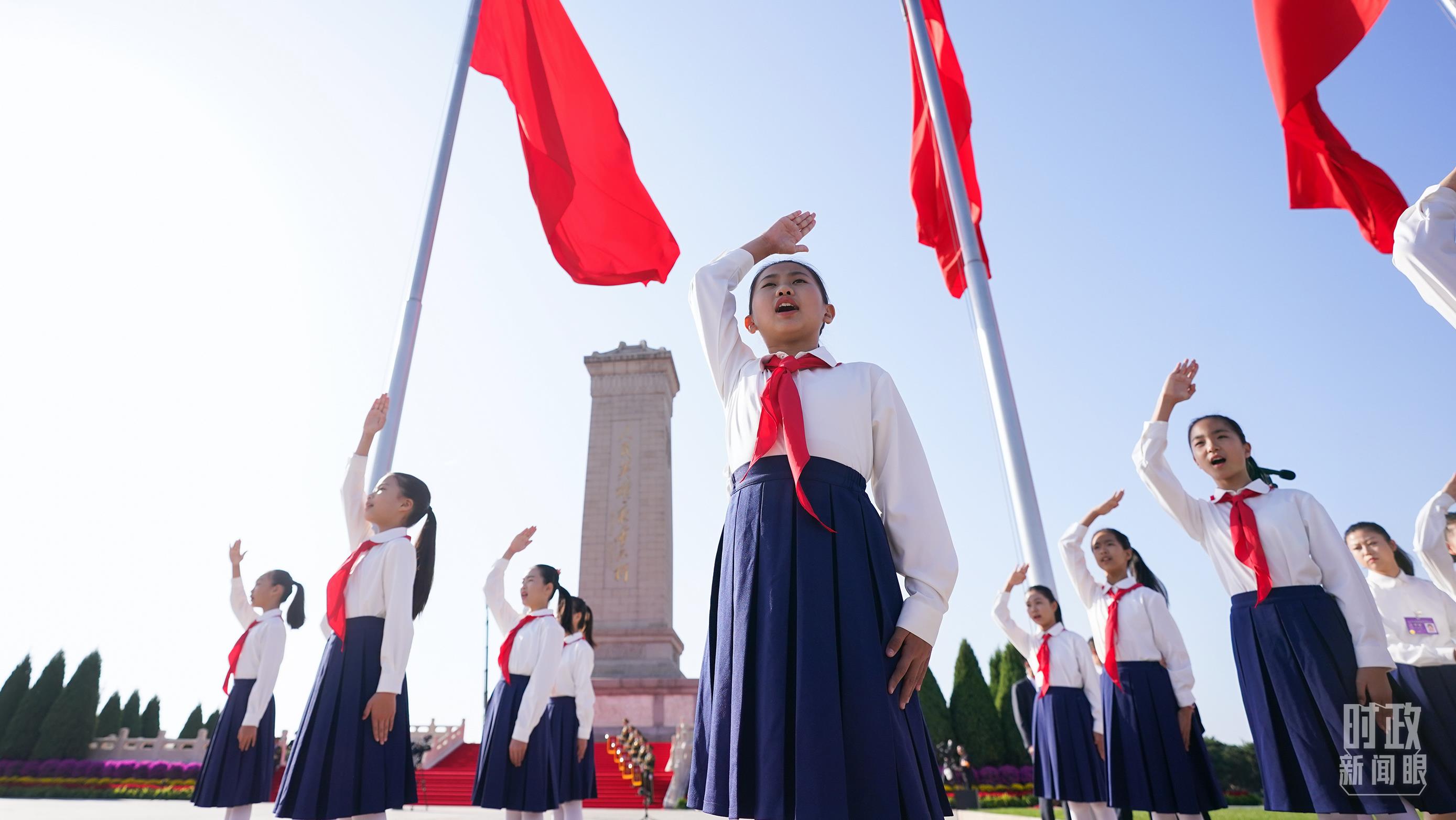 参加烈士纪念日向人民英雄敬献花篮仪式的少年儿童。(总台记者李晋拍摄)