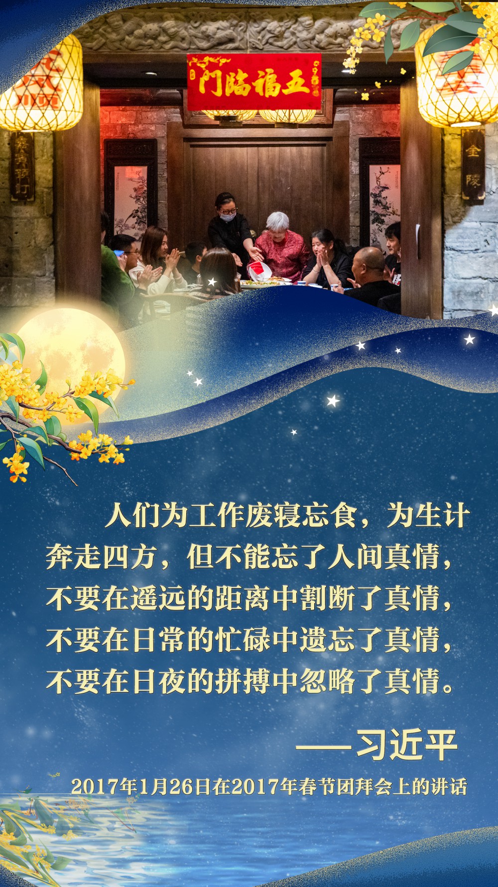 江山万重,皓月千里。刻在中华儿女骨血里的家国情怀,让每一次团聚都成为对美好生活的礼赞,让每一份祝福都汇聚成民族奋进的磅礴力量。