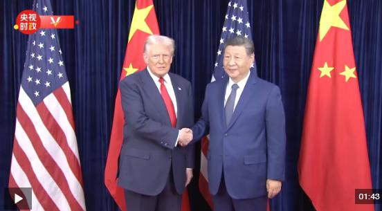 当地时间10月30日上午,国家主席习近平在釜山同美国总统特朗普举行会晤。