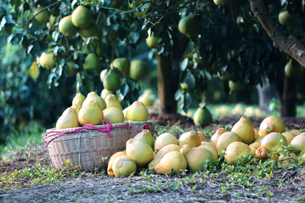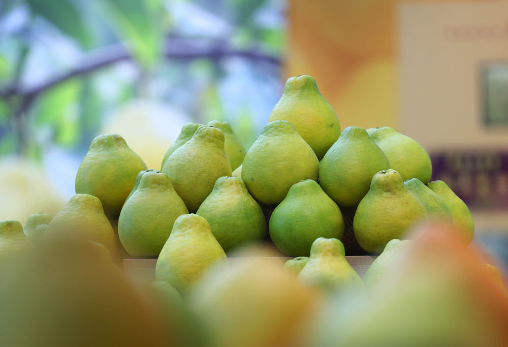 2025年11月7日在梅州南福金柚种植基地拍摄的金柚及相关产品。