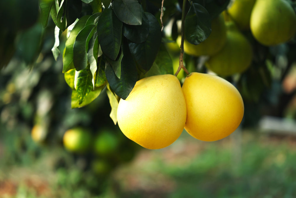 2025年6月12日,工作人员在广东省梅州市梅县区农业科学研究所检查柚子生长情况。