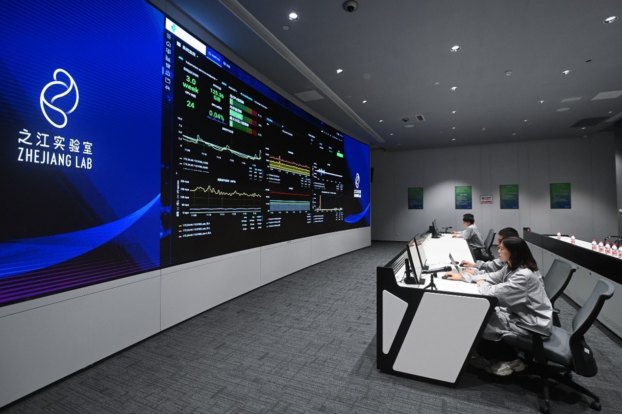 之江实验室计算与数据中心的工程师通过“之江云”系统监测服务器集群的运行状态。新华社记者 黄宗治 摄