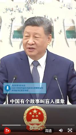 习主席借“盲人摸象”的寓言,希望使节们多到各地走走看看,全面深入了解真实立体的中国,为深化中国同各国友谊和合作积极贡献力量。以往,在多个外交场合,习主席也曾提起这则寓言故事。