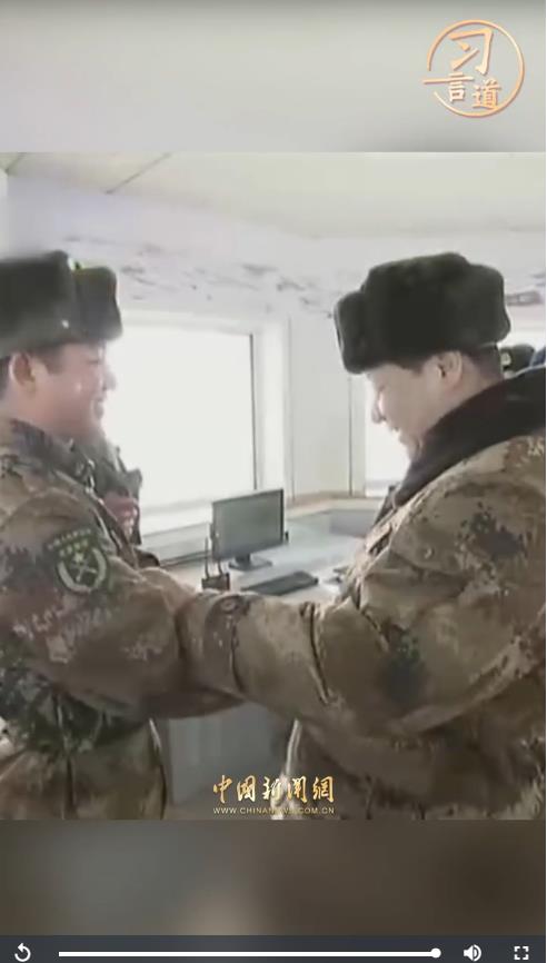 “我和你们一起在这里站岗。”2014年1月26日,习近平主席来到内蒙古阿尔山,冒着零下30多摄氏度的严寒,迎风踏雪慰问在边防线上巡逻执勤的官兵。统帅与士兵心连心,一步一履总关情。士兵,始终是习近平主席心头的牵挂。