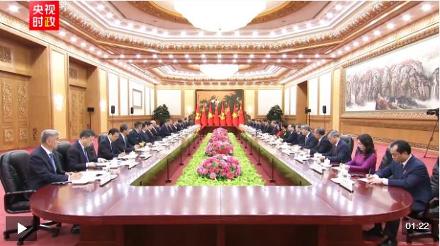 习近平指出,你当选越南国家主席后第一时间到访中国,体现了你对发展中越关系的高度重视。无论国际形势如何变化,中方始终将越南作为周边外交优先方向,愿同越方秉持初心、赓续友谊,团结协作、相互支持,高质量推进全面战略合作,加快构建更高水平具有战略意义的中越命运共同体。
