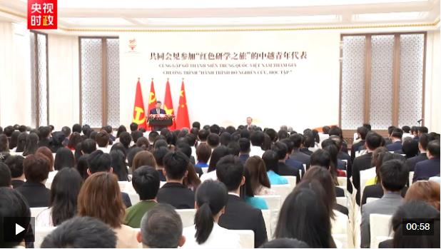 习近平表示,不久前,我收到越南河内国家大学外语附中等学校的同学们用中文写来的信,分享了参加“红色研学之旅”的深刻感悟,立志做中越友谊的传承者和传播者,我感到很欣慰。他强调,青年是推动社会发展进步的有生力量,也是中越两党两国事业薪火相传的接棒人,中越友好的未来在青年。