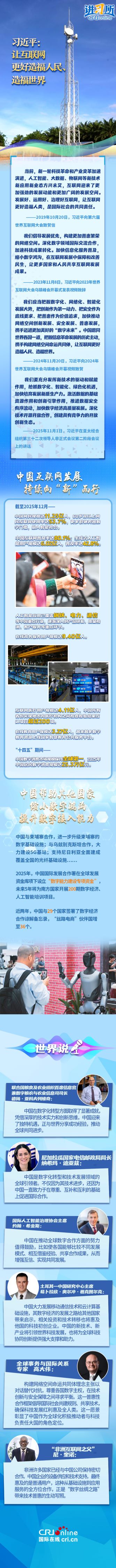 如今,从随处可见的移动支付到覆盖全国的电子政务系统;从AI安全治理到搭建“数字丝绸之路”……中国在迈向网络强国的同时,兼顾发展中国家利益与全球共同需求,打破发达国家主导数字规则制定的格局,让更多国家和人民共享互联网发展成果。