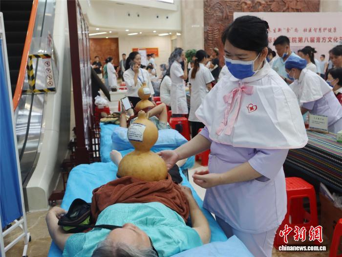 图为民众体验葫芦灸疗法。陈燕淼 摄