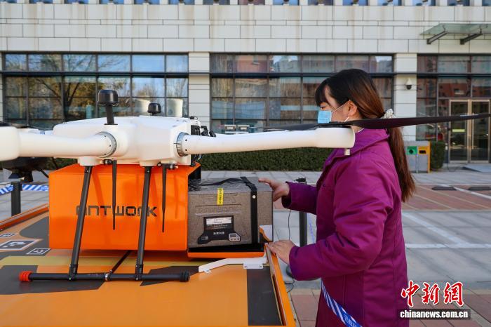12月1日,天津市首条常态化无人机运输血液制品航线正式启用。(中新天津生态城供图)