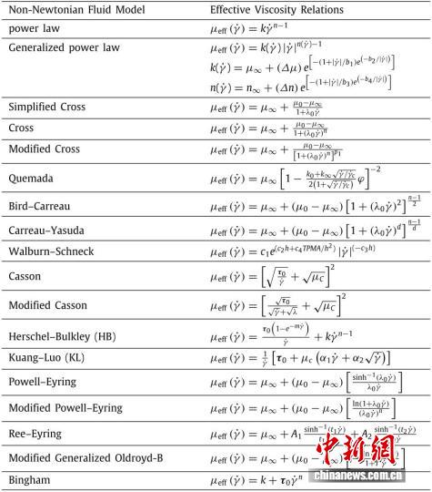 血流动力学中主流的非牛顿流体模型。西北工业大学供图