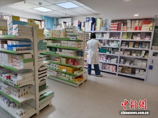 图为苁蓉社区卫生服务中心执业药师正在调配药品。中新网记者 张林虎 摄