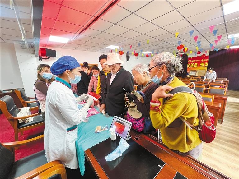 图为口腔医生为居民进行口腔检查。记者 央金 摄