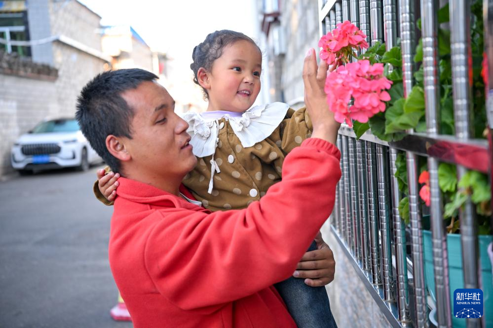 2025年10月10日,达瓦次仁在陪大女儿丹增曲音玩耍。