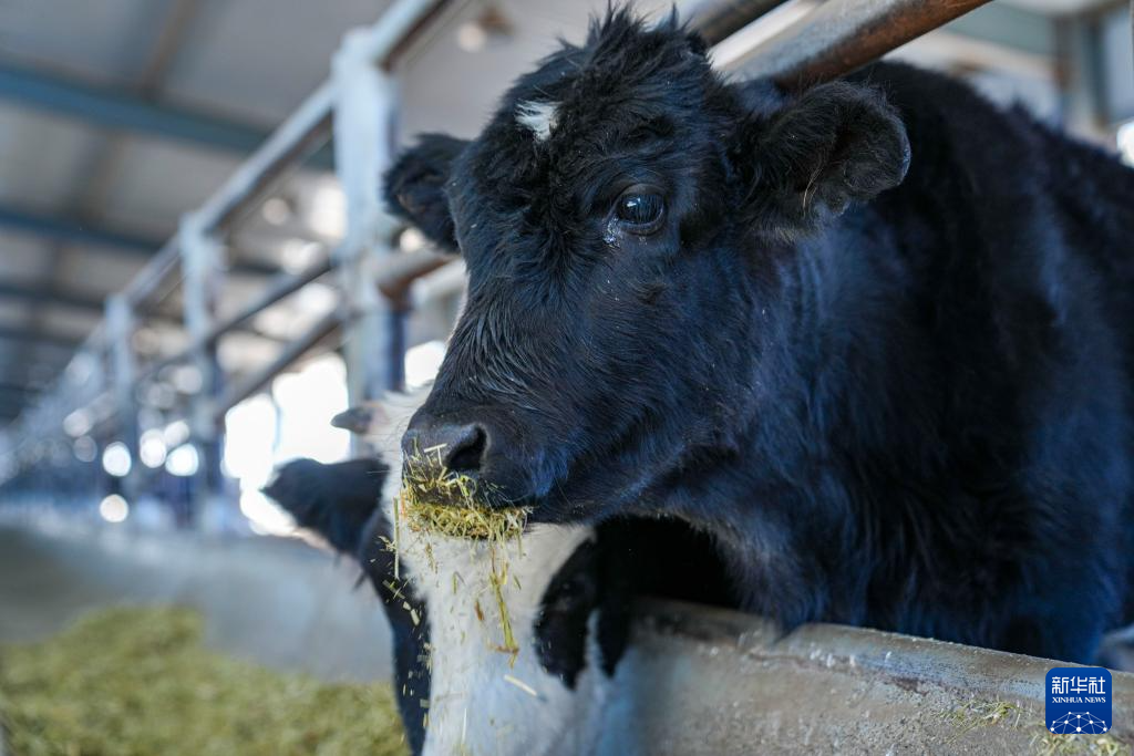 12月3日,克隆樟木牛母犊在西藏动物疫控中心(区畜牧总站)曲水实验站牛场吃草料。新华社记者 丁增尼达 摄
