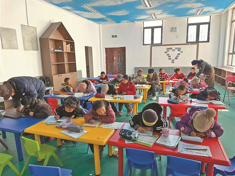 孩子们在公益辅导课堂上专注学习。拉巴桑姆 摄