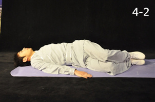 动作4:伸膝呈仰卧位,双手置于体侧,手心向下(图4-4)。