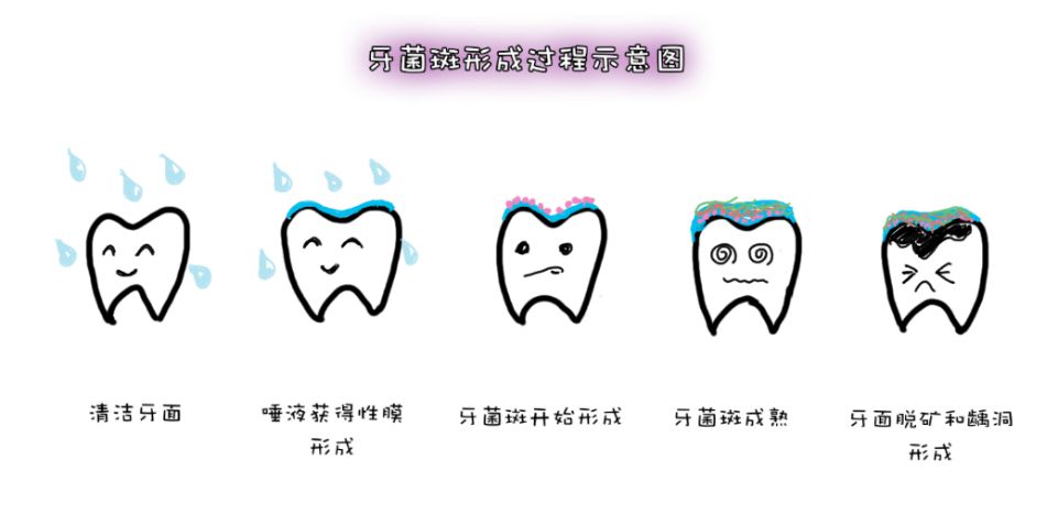 但是这些细菌并不是一开始就牢牢地粘在牙面上了,形成稳定成熟的菌斑需要一个过程: