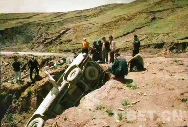 图为1997年,考古队在西藏自治区阿里地区措拉山发生了翻车事故