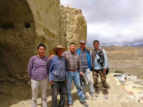 图为2019年重返西藏自治区阿里地区的皮央遗址,左起为札达县文物局局长罗丹、村民仁真、霍巍、李永宪、夏格旺堆