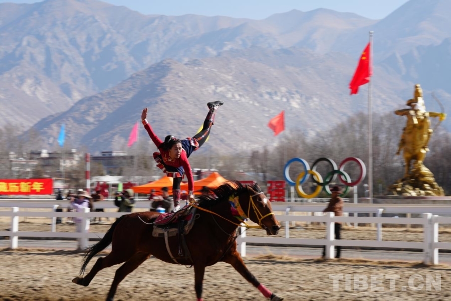 2026年藏历新年初三民族传统马术表演活动2月20日在拉萨举行。
