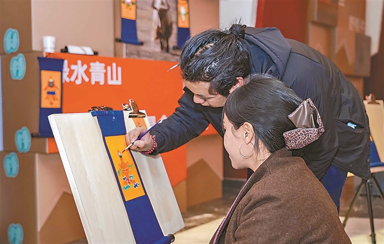 暮春时节,拉萨八廓街古韵与新风交融。鲁固一巷44号的唐卡非遗文创体验馆内人流不断,格外热闹。