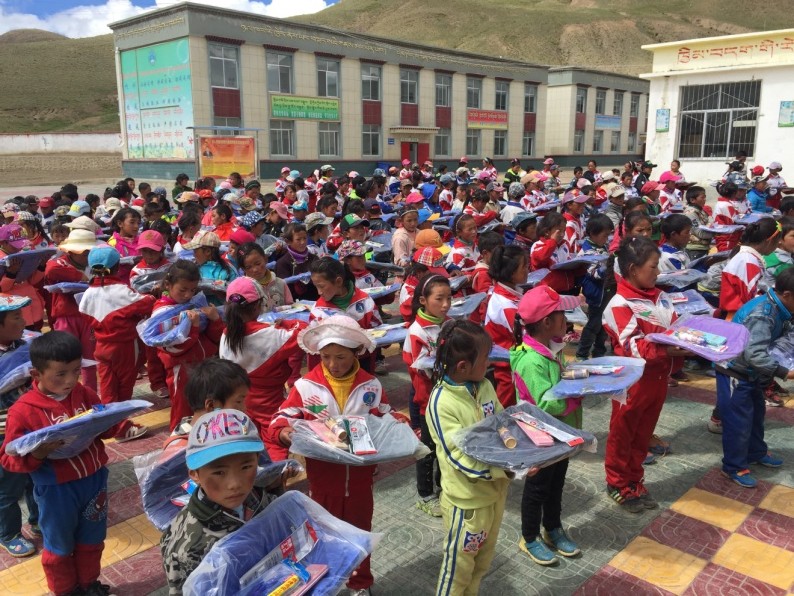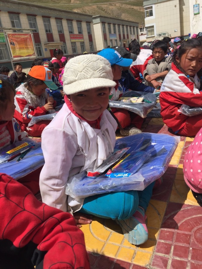 9月,也是村里孩子们开心的时刻。352份价值2万余元的书包、文具、画笔等慈善捐赠物资,从成都运抵千里之外的浪卡子县伦布雪乡。为了节约运费,我和队友一起把货物搬到车上,运回了村里,整齐地摆在了每一个学生的课桌上。孩子们用小手轻轻地抚摸着崭新漂亮的书包和文具,歌声笑声回荡在羊湖雪山之间。