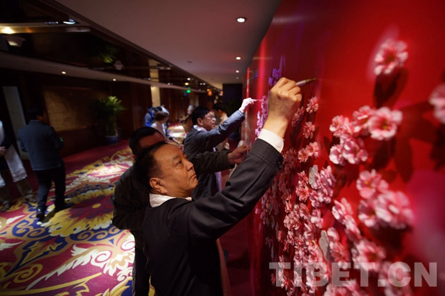 在推介会现场,主办方运用VR科技给大家720°全方位展示了西藏林芝桃花的巨大魅力,现场的嘉宾通过VR眼镜置身于虚拟现实中,以上帝视角捕捉了整个林芝的春天,仿佛此刻就在林芝的上空一观桃源盛景,忘情其中的嘉宾们都舍不得放下手中的VR眼镜。