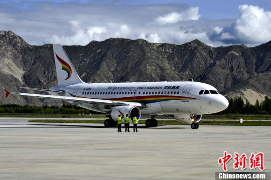 图为2011年7月26日,西藏航空公司成立暨首航仪式在拉萨贡嘎机场举行。图片来源:中新网