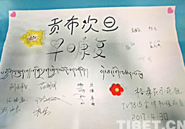 图为2017年4月30日,TV9815从拉萨到北京执飞途中,格桑花班组护送因烧伤急需赴京救治的1岁零7个月的贡布次旦一家,并为其募款。藏航供图