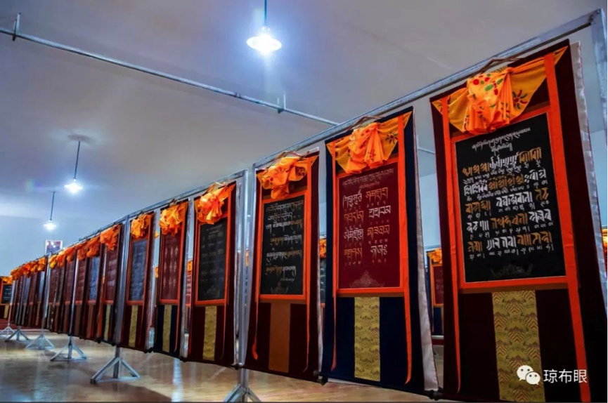 据悉,《藏文字体最多的唐卡大集》项目历时两年的时间完成,通过收集、整理,采用象雄时期的列砖体、稞体、乌金体等藏文字体书写而成,内容包括《习近平谈治国理政》《四讲四爱》《萨迦格言》《水木格言》《琼布民间谚语》等,其中藏文书法类唐卡218种,人物造像类唐卡5幅,前言、结语唐卡2幅,共计225幅唐卡。