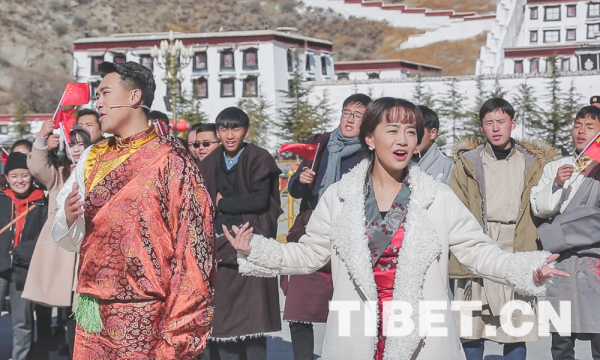布达拉宫广场上演快闪祝福祖国70华诞