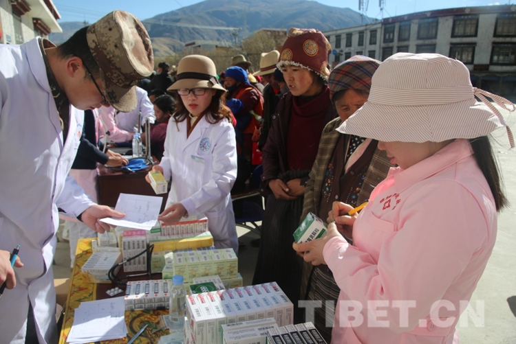 图为3月20日,解放军陆军第954医院为琼结县群众免费发放药品。