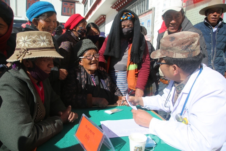 72岁的琼结县雪巴社区居民白玛德吉感激地说:“还是党的政策好啊,军医们都是习近平总书记和党中央派来的白衣天使,我们足不出户,在家门口就能接受免费的体检和医疗服务,很是方便。”