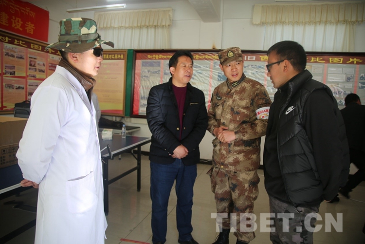 图为3月20日,解放军陆军第954医院副院长、医学博士康波为琼结群众检查身体。
